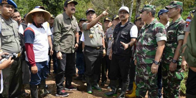Kapolda Jatim Irjen Polisi Drs Machfud Arifin, SH (Menunjuk) Saat Meninjau Langsung Lokasi Tanah Longsor Di Ponorogo Minggu (02/04/2017). Foto dari Humas Polda Jatim