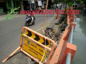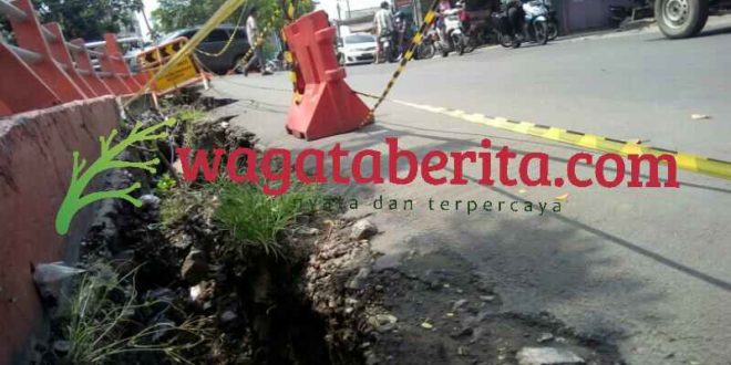 WAGATABERITA.COM – SURABAYA. Berhati – hatilah anda pengguna jalan jika melintas di jalan Kebonsari Tengah, Kecamatan Jambangan, Surabaya. Sebab ada lubangbesar menganga di sisi utara. Tepatnya bersebelahan dengan sungai.