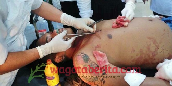 Namun na’as, pelaku kemudian mengeluarkan sebilah Clurit dan ditebaskan ke tubuh korban. Korban lalu tersungkur ke lantai, dan langsung tak sadarkan diri. Sedangkan pelaku lantas melarikan diri.