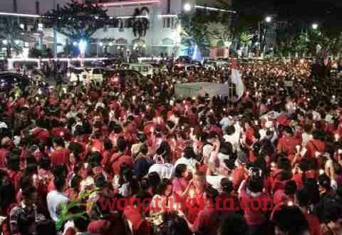 WAGATABERITA.COM – SURABAYA. Seribu Lilin solidaritas Ahok yang digelar di Tugu Pahlawan Surabaya Jawa Timur Jumat (12/05/2017) berlangsung aman.
