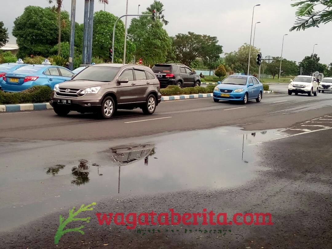 Genangan Sisa Air Hujan Tampak Di Jalan Menuju Bandara Juanda. Sumber Foto : Anggun Angkawijaya