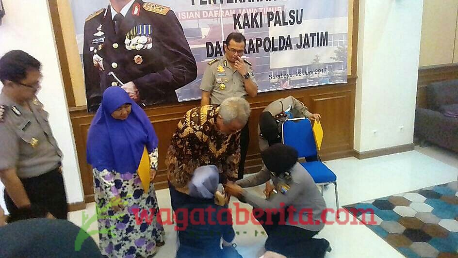 WAGATABERITA.COM – SURABAYA. Kapolda Jawa Timur Irjen pol Drs.Machfud Arifin memberikan 7 bantuan berupa kaki palsu kepada dua anggota kepolisian Republik Indonesia, Kamis (23/06/2017).
