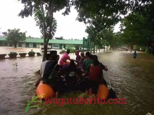 Kata dia, Kamis (22/06/2017), banjir itu terjadi akibat terjadinya hutan yang sudah gundul serta bertepatan dengan pertemuan air pasang di laut sehingga meluap ke beberapa sungai, baik sungai yang ada dalam kota maupun di desa.