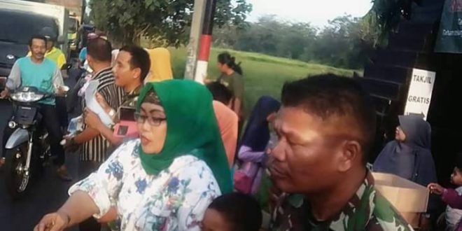 Tepat di depan kantor Bakesbangpol Kabupaten Sidoarjo, para pengguna jalan antre untuk mendapatkan takjil yang dibagikan secara langsung oleh Dandim 0816/Sidoarjo, Letkol Inf Fadli Mulyono.
