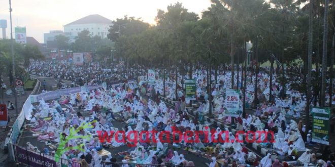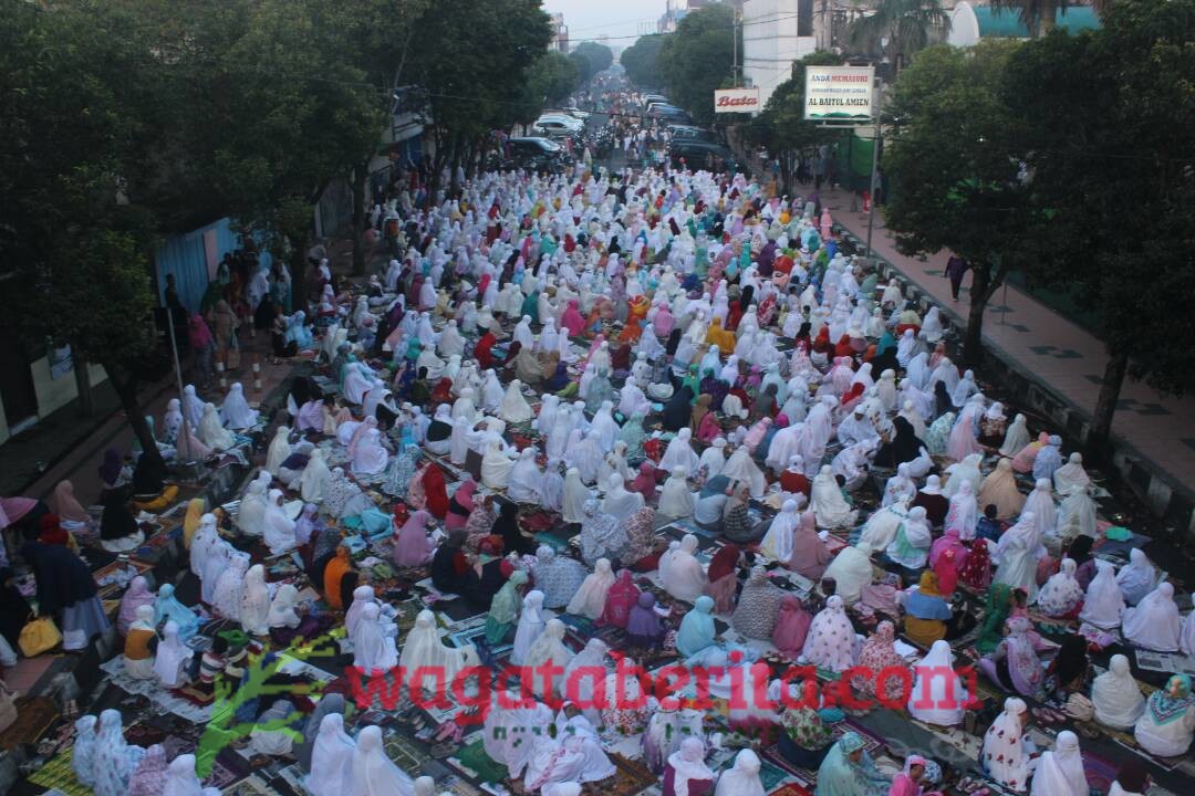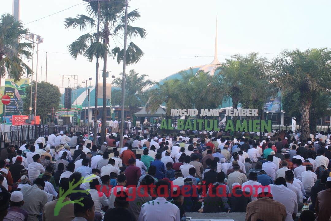 WAGATABERITA.COM – JEMBER. Umat muslim di kota Jember berduyun – duyun melaksanakan sholat Ied 1438 di Masjid Jami’ Al Baitul Amin Jember.