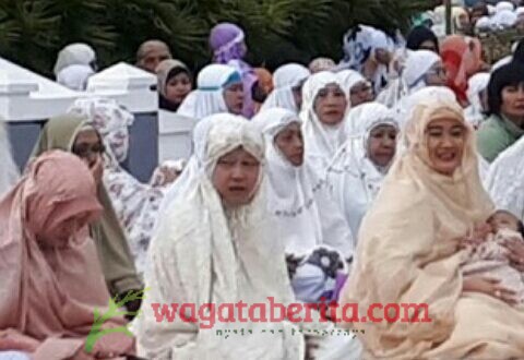 WAGATABERITA.COM – SURABAYA. Walikota Surabaya Tri Rismaharini salat Ied bareng bersama warga di Taman Surya Surabaya, Minggu (25/6/2017).