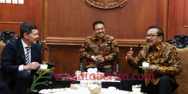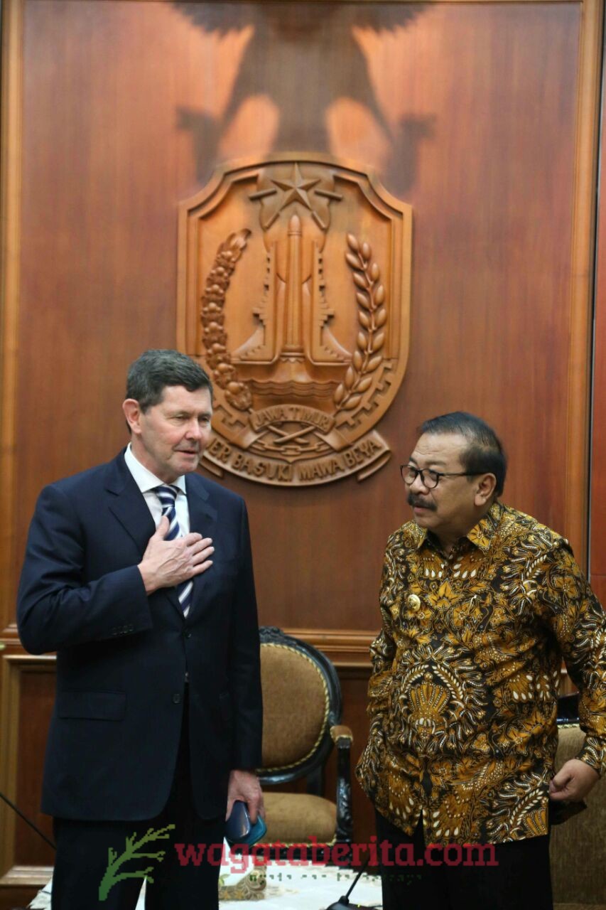 WAGATABERITA.COM – SURABAYA. Gubernur Jatim, Dr. H. Soekarwo menawarkan empat jaminan kemudahan bagi pengusaha Australia yang ingin berinvestasi di Jatim. Empat jaminan tersebut meliputi kemudahan perijinan, ketersediaan lahan, ketersediaan energi atau listrik, serta iklim buruh yang kondusif. Tawaran tersebut disampaikannya saat menerima kunjungan delegasi parlemen dari Australia di Gedung Negara Grahadi, Surabaya, Selasa (11/07/2017).