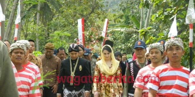 Bupati Trenggalek Bersama Istri Ikuti Kirab Kepala Kerbau Sebelum Dilarung Kedalam Dam Bagong. Sumber Foto : Ayu Mila Sari