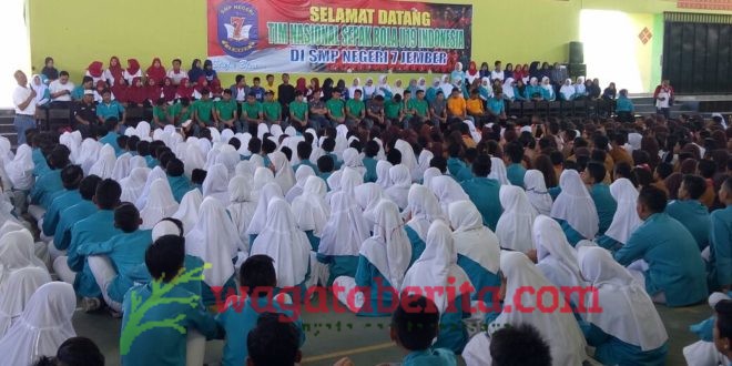 Seperti kunjungan Tim U – 19 di sekolah menengah pertama negeri 7, kabupaten Jember. Rombongan Timnas yang berjumlah sekitar belasan orang itu, langsung menyapa ratusan pelajar sekolah setempat.