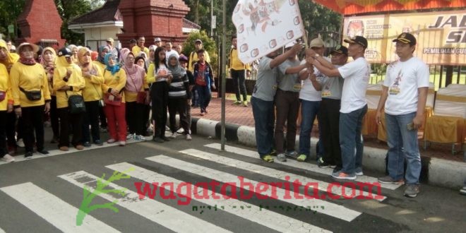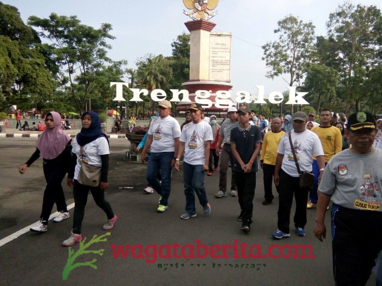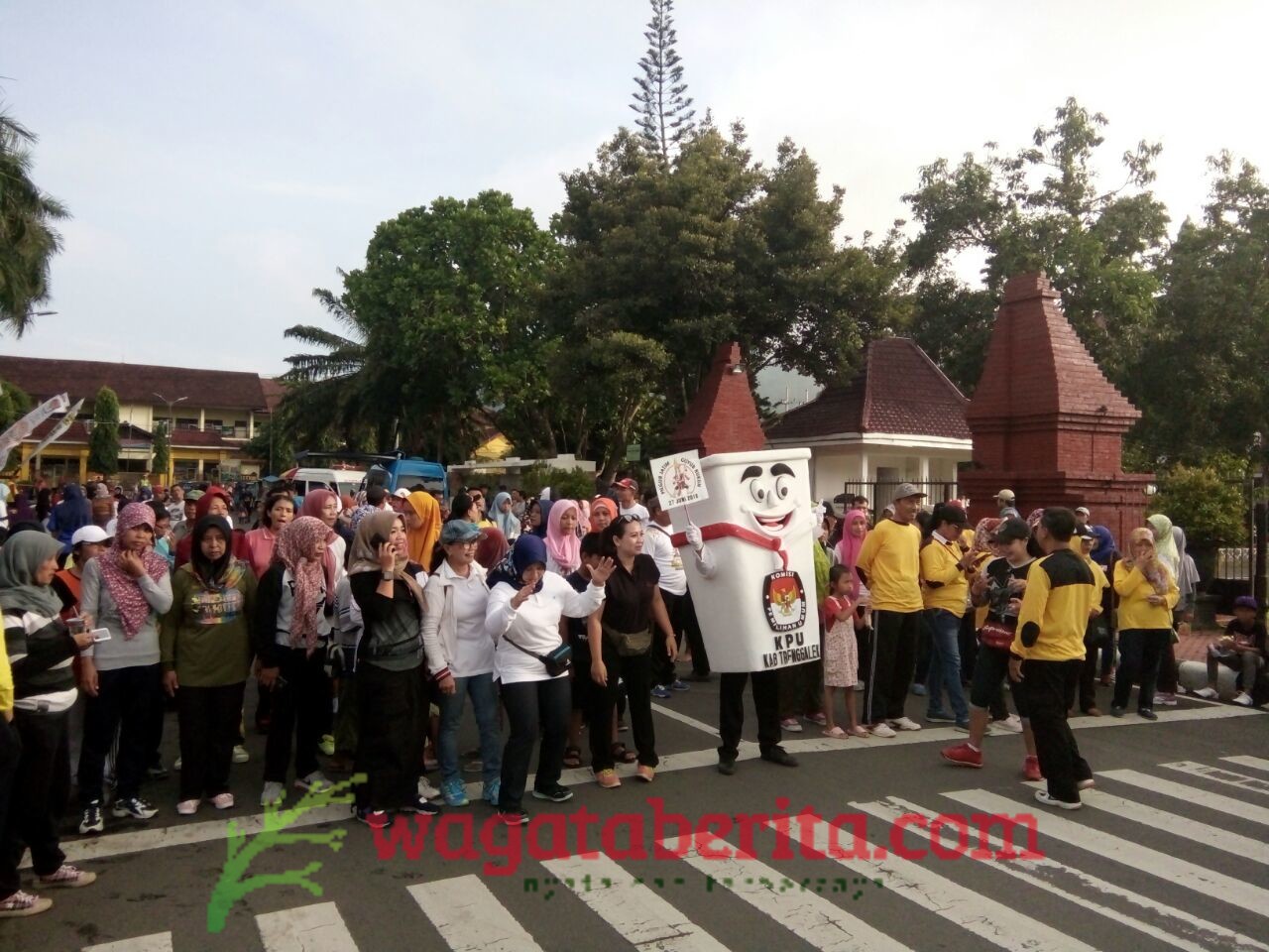 WAGATABERITA.COM – TRENGGALEK. Jelang Pemilihan Gubernur dan Wakil Gubernur Jawa Timur pada tahun 2018 mendatang, Komisi Pemilihan Umum Daerah Kabupaten Trenggalek gelar jalan sehat. Dalam kesempatan tersebut, dimanfaatkan pula oleh KPU Trenggalek untuk mensosialisasikan tata cara dalam menjalankan pesta demokrasi dalam Pilkada Jatim tahun 2018 kepada masyarakat.