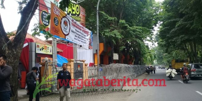 WAGATABERITA.COM – SURABAYA. Hari pertama pendaftaran calon Gubernur Jatim 2018, Komisi Pemilihan Umum (KPU) Jawa Timur dipagari kawat berduri.