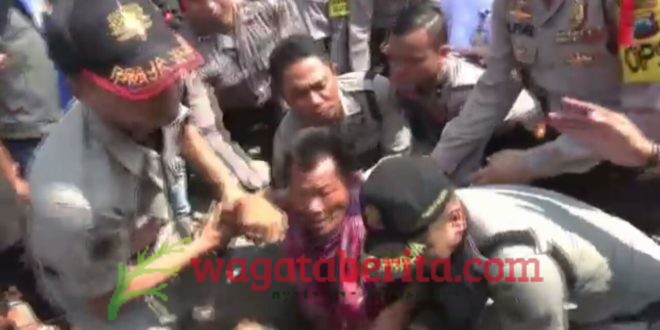 Tak hanya berontak, pria berusia sekitar paruh baya itu pun berteriak – teriak, berusaha menolak petugas yang berusaha mengamankannya, Rabu (21/02/2018).