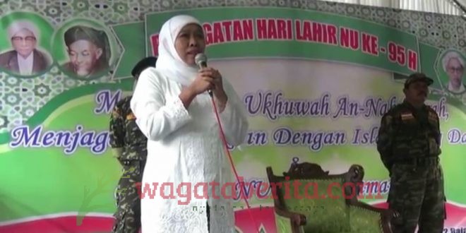 Sampai dilokasi kampanye, Ketua Pimpinan Pusat Muslimat NU tersebut, Langsung menyapa massa yang mayoritas diantaranya merupakan Badan Otonom NU. Seperti, Fatayat, Muslimat, IPNU, IPPNU, dan Ansor. Dalam sambutannya, Cagub Khofifah berjanji jika nantinya ia menang di Pilgub Jatim, Ia akan memberikan perhatian bagi warga Nahdliyin.