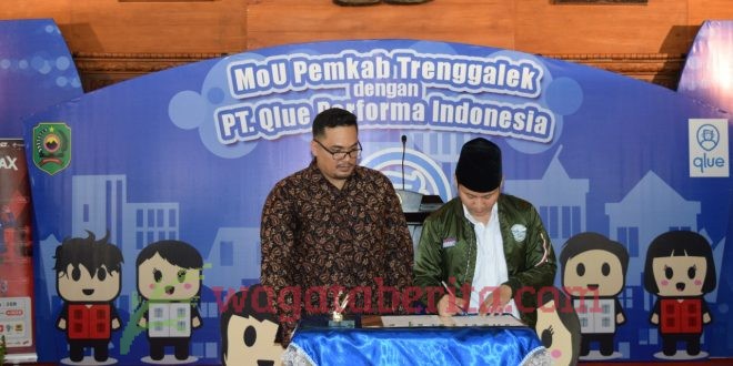 WAGATABERITA.COM – TRENGGALEK. Pemerintah Kabupaten Trenggalek bekerja sama dengan PT Performa Qlue Indonesia demi meluncurkan aplikasi Qlue. Bertempat di Pendapa Agung Manggala Praja Nugraha, kegiatan tersebut diikuti lebih dari 160 Satuan Tugas dari beberapa Organisasi Perangkat Daerah (OPD) di Kota Keripik Tempe.