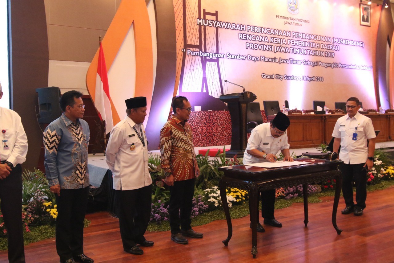 WAGATABERITA.COM – SURABAYA. Menghadiri Musyawarah Perencanaan Pembangunan (Musrenbang) Rencana Kerja Pemerintah Daerah/RKPD Provinsi Jatim tahun 2019, di Grand City Convex, Surabaya, Rabu (18/04/2018), Pakde Karwo menyampaikan bahwa prioritas Rencana Kerja RKPD tahun 2019 yang direncanakan oleh Pemprov Jatim merupakan sinergi dari program atau Rencana Kerja Pemerintah/RKP nasional.