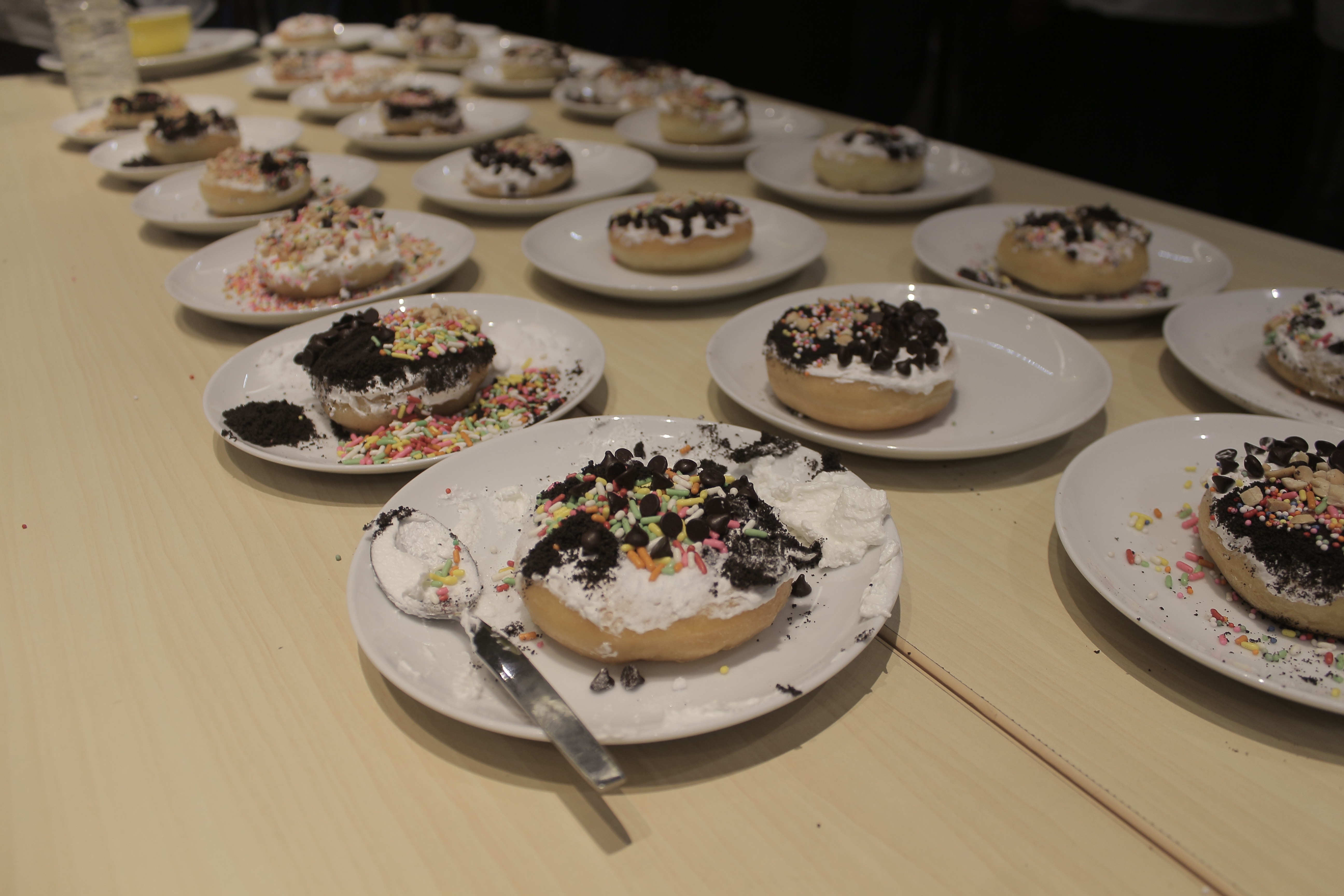 Saat berlomba menghias donat, adik – adik dari panti asuhan ini dibagi menjadi 4 kelompok yang terdiri dari 5 orang. Antusiasme tinggi terpancar dari keceriaan wajah mereka saat mulai berkreasi menghias donat, saling berbagi ide dan imajinasi agar dapat menjadi yang terbaik.
