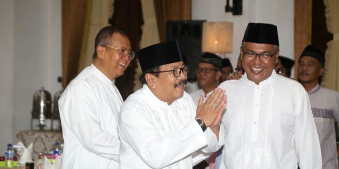 WAGATABERITA.COM – SURABAYA. Kegiatan Buka Puasa Bersama Gubernur Jatim Dr. H. Soekarwo bersama PWI, Pimpinan Media Cetak, On Line, dan Elektronik di Gedung Negara Grahadi Surabaya, Sabtu (26/05) malam yang di Siarkan Kepala Biro Humas dan Protokol, Drs. Benny Sampirwanto, M.Si. Minggu (27/05/2018) untuk membahas persiapan sebagai tuan rumah pelaksanaan HPN tahun 2019 mendatang.