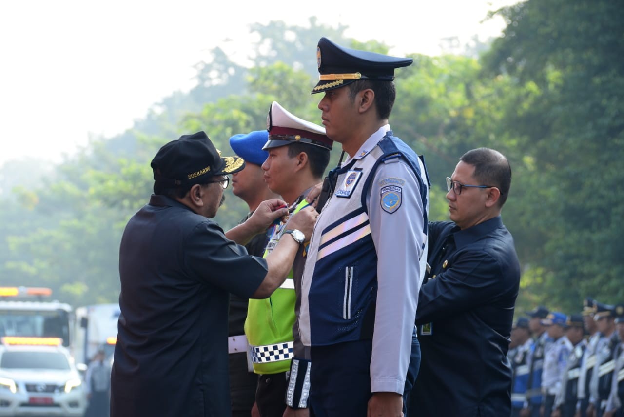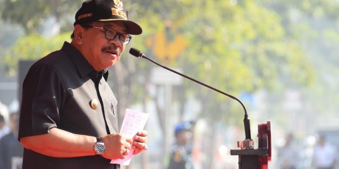 WAGATABERITA.COM – SURABAYA. Gubernur Jatim Dr. H. Soekarwo memimpin Apel Gelar Pasukan Pelaksanaan dan PengamananAngkutan Lebaran Terpadu Provinsi Jatim Tahun 2018 di depan kantor Dinas Perhubungan/Dishub Jatim, Frontage Road, Jl. Ahmad Yani, Surabaya, Sabtu (09/06/2018).