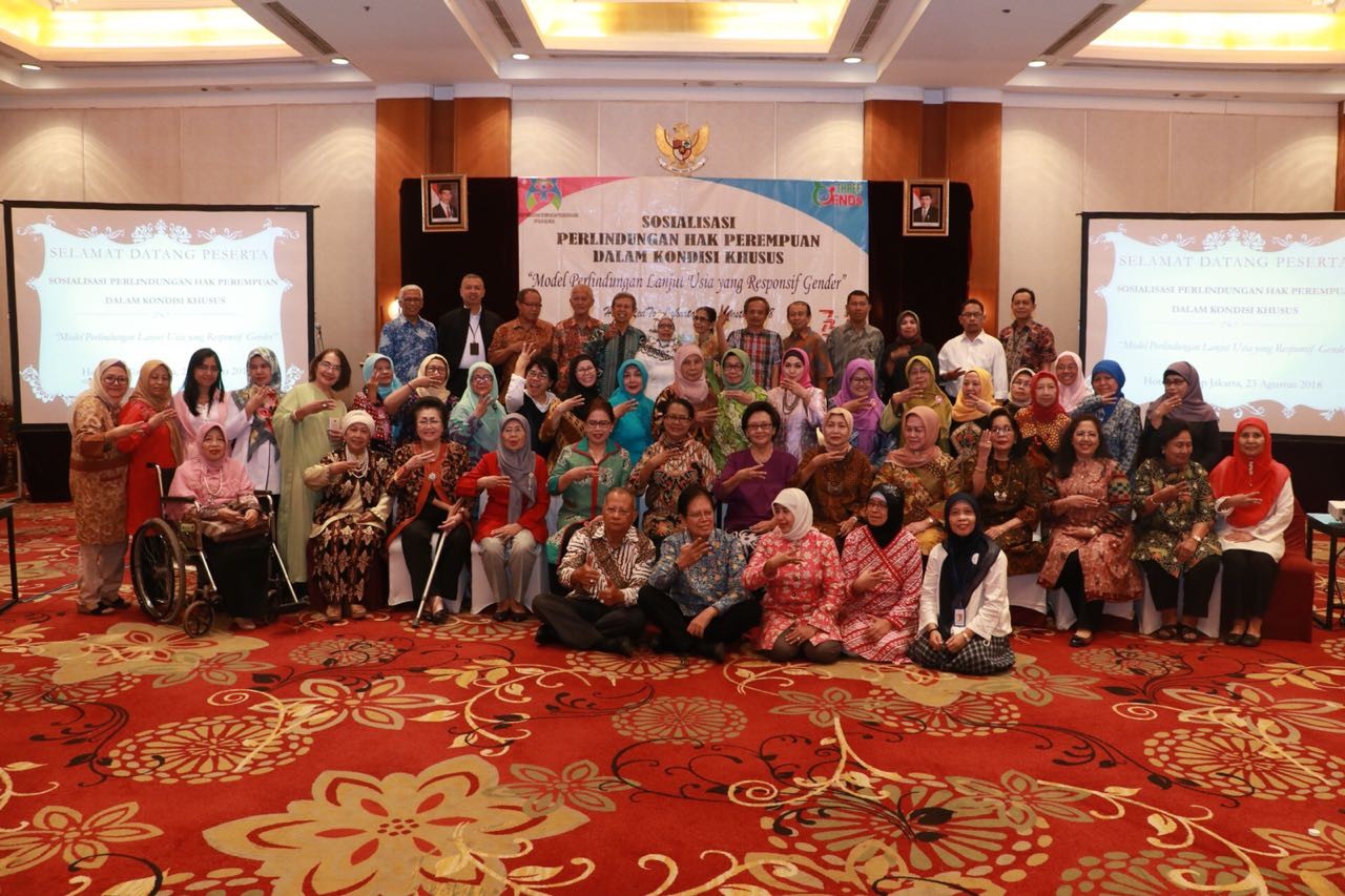 Lansia perempuan merupakan kelompok yang berpotensi tinggi mangalami diskriminasi ganda karena statusnya sebagai perempuan dan sebagai kelompok lanjut usia. Selain itu, belum ada model lanjut usia yang responsif gender di Indonesia. Kementerian Pemberdayaan Perempuan dan Perlindungan Anak (Kemen PPPA) bidang Perlindungan Hak Perempuan dalam Situasi Darurat dan Kondisi Khusus berupaya untuk memecahkan permasalahan yang dihadapi agar lansia terlindungi hak – haknya. Upaya tersebut dilakukan melalui alternatif pembentukan model perlindungan lansia yang responsif gender kepada Mitra Daya Setara (MDS) KPP yang dikemas dalam bentuk diskusi dan sosialisasi.