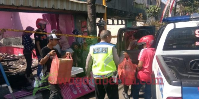 Anggota Kepolisian Membantu Mengevakuasi Barang Dagangan Yang Masih Bisa Diselamatkan.