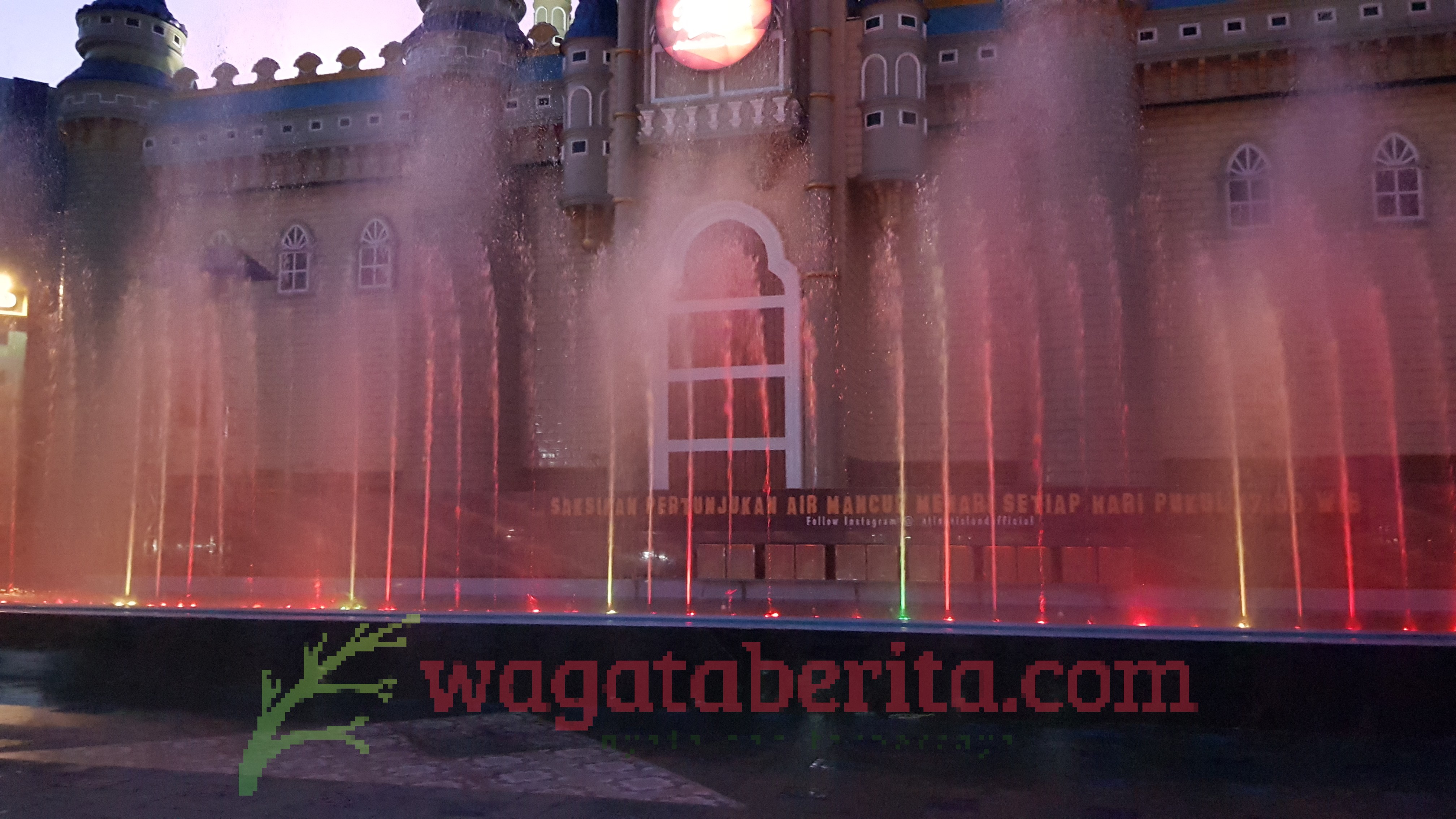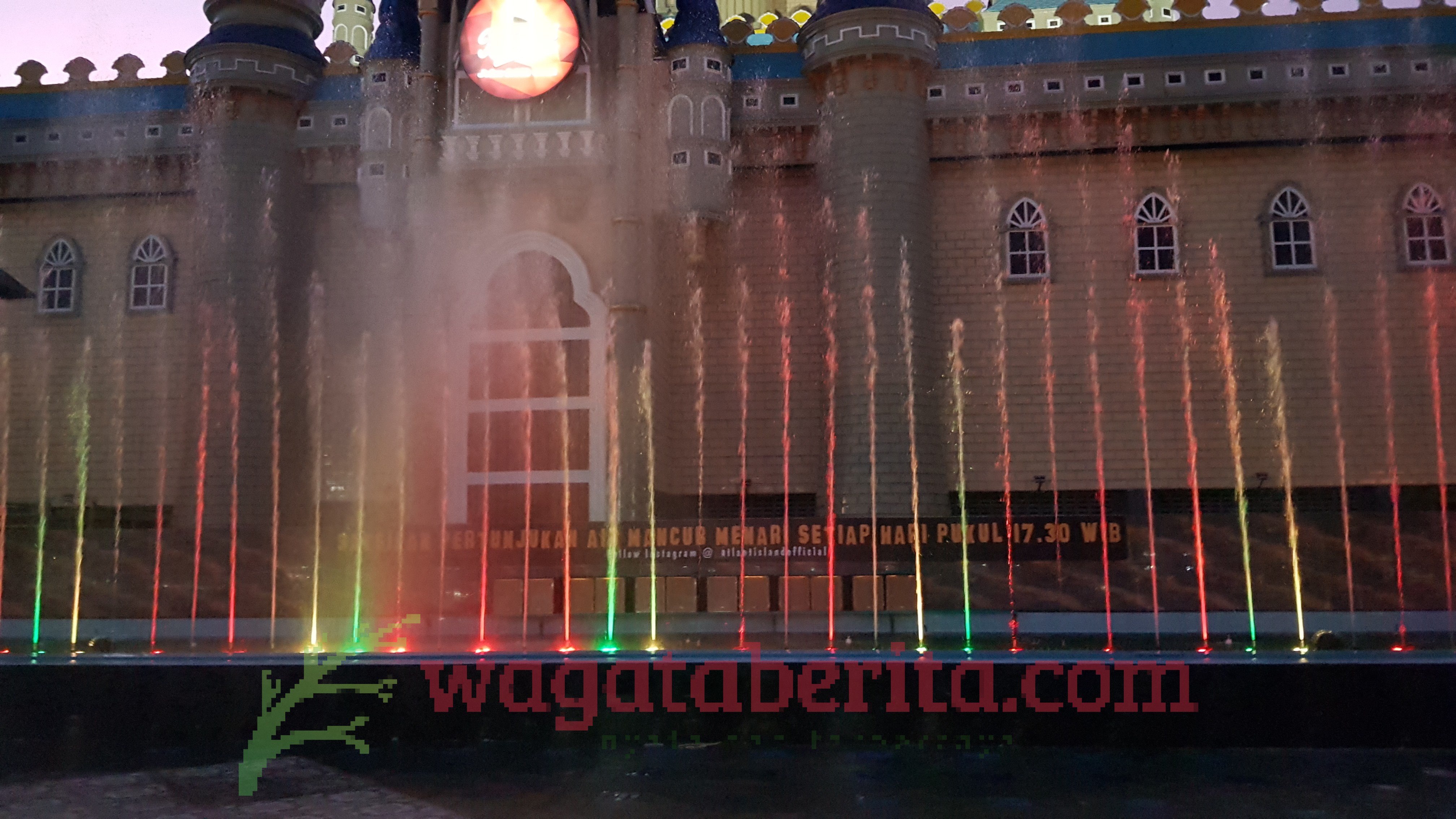 WAGATABERITA.COM – SURABAYA. Berikut adalah tampilan air mancur menari produksi Atlantis land Surabaya, Sabtu (08/09/2018). (Red)