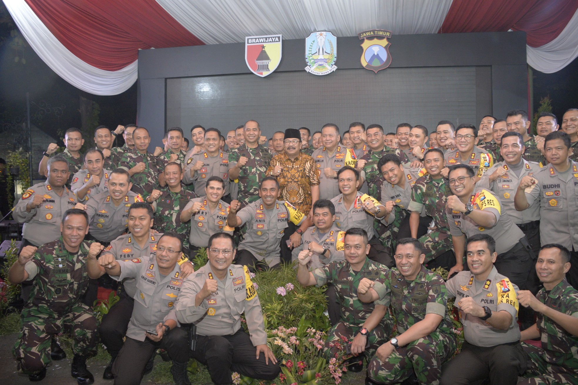 Ke depan, langkah sinergitas dan kebersamaan ini akan ditularkan hingga polres bersama pasukan. Kebersamaan itu, akan menunjukkan kepada masyarakat Jatim bahwa semua pihak solid, dan siap dalam memberikan rasa aman. “Saya berharap kita bisa terus kompak dalam menghadapi tahun politik seperti ini. Semoga kondisi yang aman dan kondusif di Jatim bisa menjadi percontohan nasional,” tutupnya. (Red)