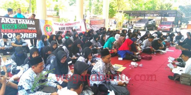 WAGATABERITA.COM – PROBOLINGGO. Mengusung aksi 1000 doa untuk kesejahteraan honorer, ratusan GTT (guru tidak tetap) mulai tingkat SMP dan SMA se – Kota Probolinggo, menggelar istighosah di pelataran gedung DPRD Kota Probolinggo, Selasa (02/10/2018).