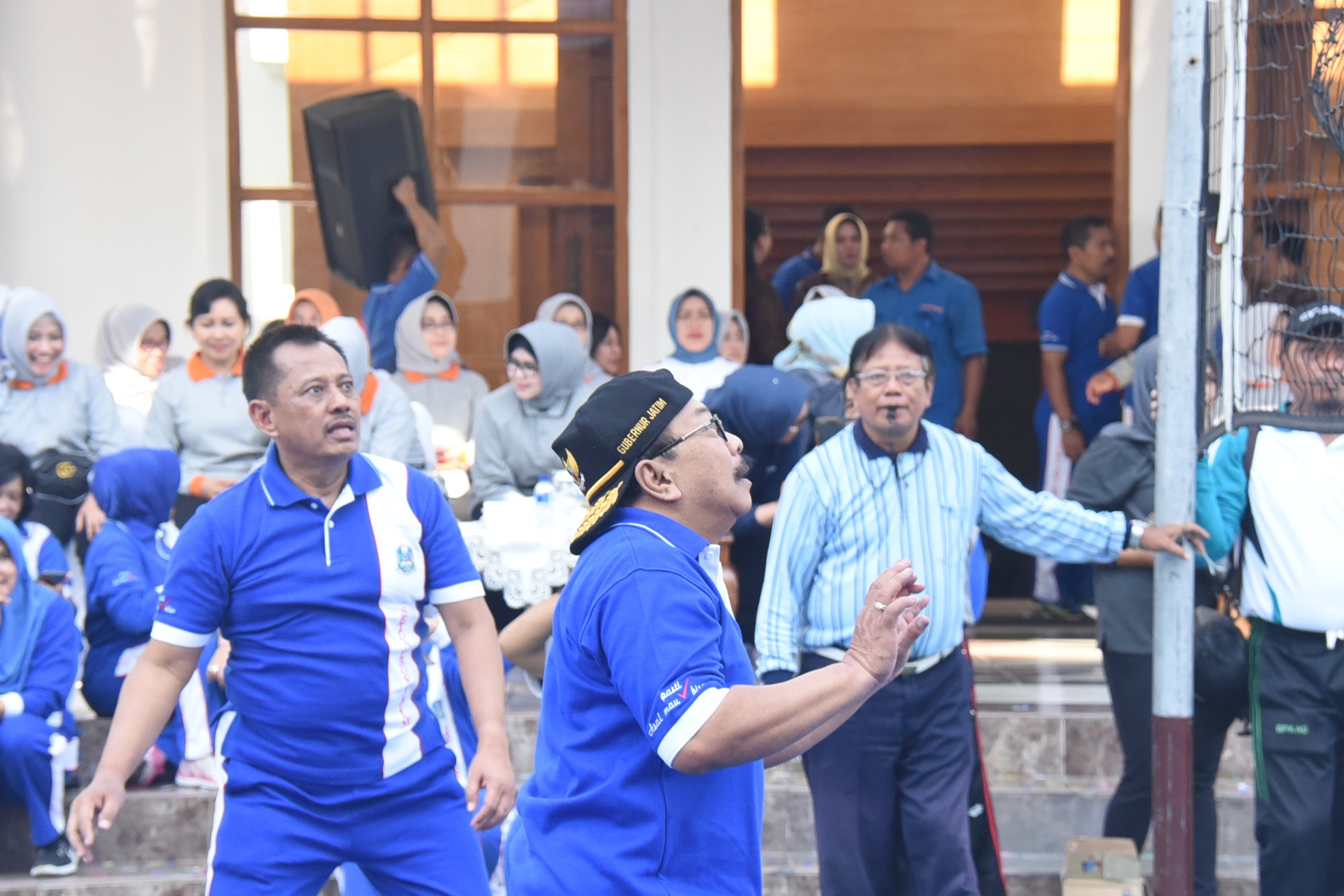 Hal itu dikarenakan Gubernur Jatim Dr. H. Soekarwo, sempat melakukan pertandingan Bola Voli antara group Pemprov Jatim yang dipimpinnya melawan Tim Bupati/Walikota Jawa Timur.