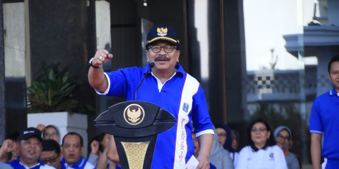 WAGATABERITA.COM – SURABAYA. Kegiatan Launching Hari Jadi ke – 73 Provinsi Jawa Timur yang dilaksanakan di Halaman Kantor Gubernur Jatim, Jalan Pahlawan 110 Surabaya, Senin (08/10/2018), diwarnai pemandangan yang menarik perhatian.