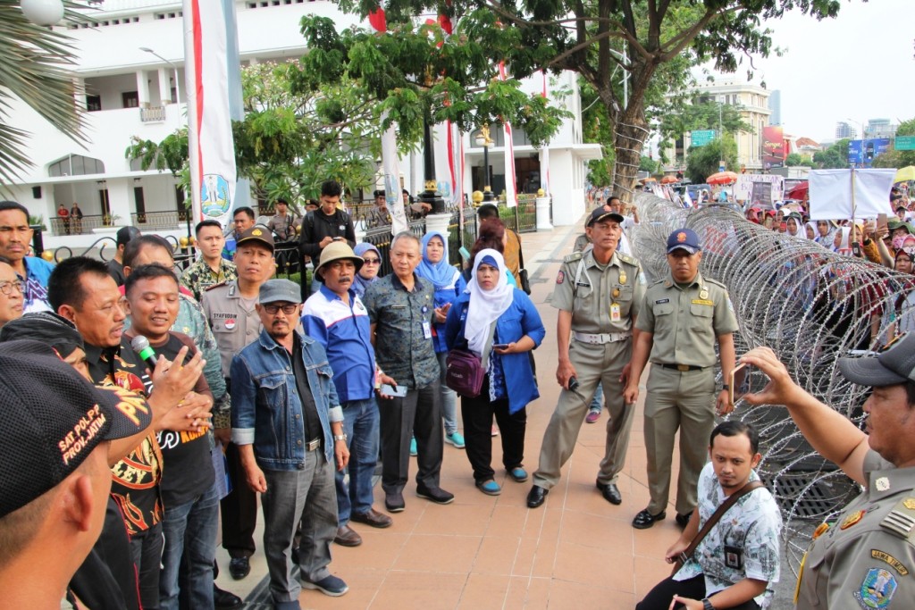 WAGATABERITA.COM – SURABAYA. Perwakilan buruh linting rokok datangi Kantor Gubernur Jatim, di Jalan Pahlawan No. 110 Surabaya, Kamis (01/11/2018) sore.