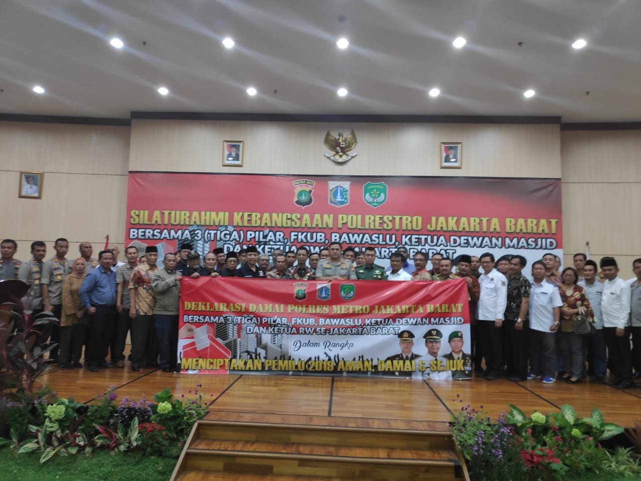 WAGATABERITA.COM – JAKARTA. Kegiatan silaturahmi Kebangsaan di gelar Polres Metro Jakarta Barat bersama 3 pilar, FKUB, Bawaslu, Ketua Dewan Masjid dan Ketua RW se Jakarta Barat di Gedung MH Thamrin, Kantor Walikota Jakarta Barat, Jumat (07/12/2018) dalam rangka mewujudkan Pemilu 2019 aman, damai dan sejuk.