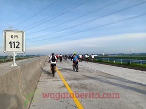 Gowes ceria melintasi jalur Tol Pasuruan – Probolinggo dengan rute sejauh 51 kilometer, mulai pintul Tol Leces hingga keluar di Tol Tongas.