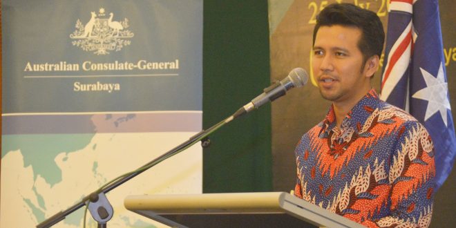 WAGATABERITA.COM – SURABAYA. Wakil Gubernur Jatim Emil Elestianto Dardak menghadiri Resepsi Perpisahan Tim Sepakbola U19 Negara Bagian Australia Barat “Gold Fields Men” yang diadakan di Balai Adika, Hotel Mojopahit Surabaya, Kamis (25/07/2019) malam.