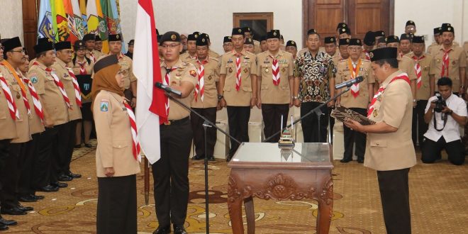 WAGATABERITA.COM – SURABAYA. Gubernur Jawa Timur Khofifah Indar Parawansa dilantik sebagai Ketua Majelis Pembimbing Daerah (Mabida) Gerakan Pramuka Jatim Masa Bakti 2019 – 2024, di Gedung Negara Grahadi, Surabaya, Jumat (09/08/2019) oleh Ketua Kwartir Nasional (Kwarnas) Gerakan Pramuka Komjen Pol (Purn) Budi Waseso.