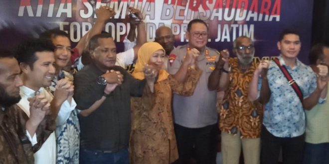 Sedangkan menanggapi hal tersebut Gubernur Jatim Khofifah Indar Parawansa menyampaikan jangan mudah terprovokasi dengan isu hoax yang mengakibatkan perpecahan, “Jagalah bangsa ini karena bangsa Indonesia selalu membangun keharmonisan, hidup berdampingan tanpa ada perbedaan, dari sabang sampai merauke kita adalah saudara kita Indonesia” katanya. (Red/*)