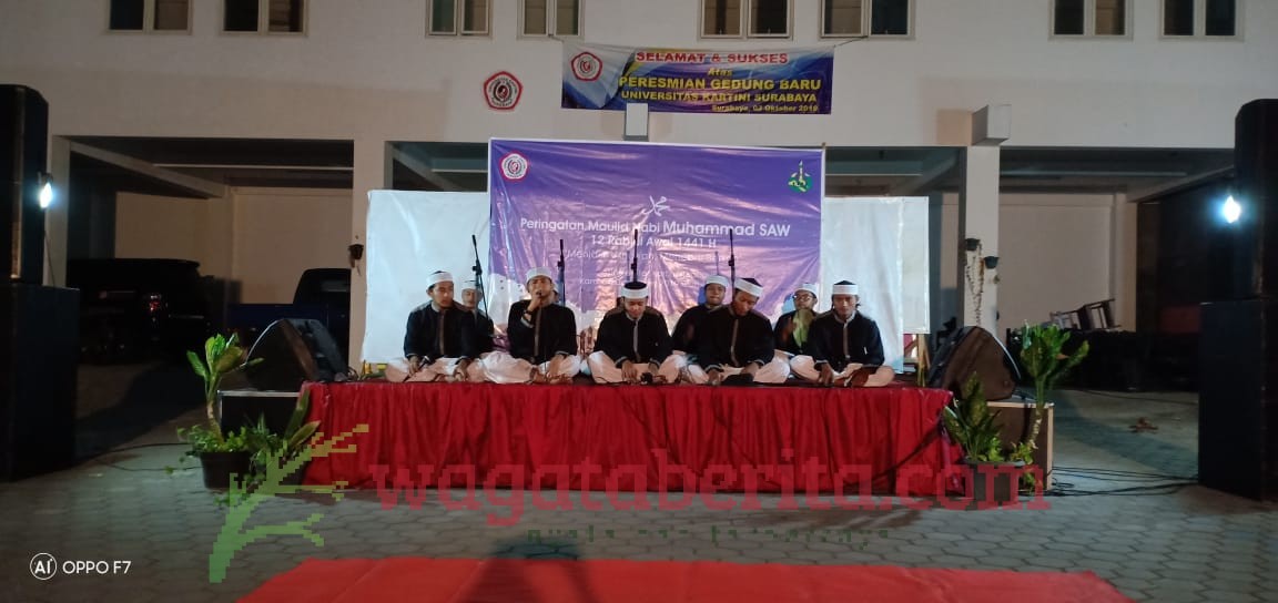WAGATABERITA.COM – SURABAYA. Peringatan Maulid Nabi Muhammad SAW (Rabiul awal 1441 Hijriah) adalah tradisi memperingati lahirnya Nabi Muhammad yang biasa dilakukan umat Islam, baik dari perseorangan maupun instansi Pemerintah maupun Swata termasuk Universitas Kartini Surabaya, Kamis (05/12/2019).
