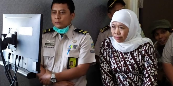 WAGATABERITA.COM – SURABAYA. Virus Corona yang sedang mewabah diberbagai negara khususnya China membuat Pemerintah Jawa Timur melakukan antisipasi dan peningkatan kewaspadaan terhadap masuknya Virus tersebut sehingga Gubernur Khofifah Indar Parawansa memastikan dengan mengecek langsung fungsi alat ukur suhu tubuh (Thermal Scanner) di Bandara T2 Juanda Surabaya, Jumat (24/01/2020).