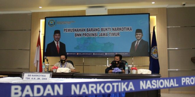Sehingga hari ini Rabu (02/09/2020) BNNP Jatim melaksanakan pemusnahan barang sitaan Narkotika jenis sabu yang disita dari empat tersangka dengan tempat kejadian perkara (TKP) yang berbeda dengan sebanyak ± 98,26 (Sembilan puluh tiga koma dua puluh enam) gram.