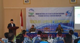 WAGATABERITA.COM – TRENGGALEK. Plt Bupati Trenggalek, Mochammad Nur Arifin buka Sekolah Lapang Tanggap Gempa Bumi.