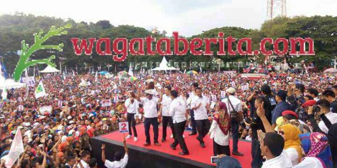 WAGATABERITA.COM – KENDARI. Puluhan ribu simpatisan calon wali kota dan wakil walikota Kendari, Sulawesi Tenggara (Sultra), Adriatma Dwi Putra-Sulkarnain tetap bertahan di lapangan meskipun diguyur hujan sekitar 15 menit saat kampanye akbar di Lapangan Benubenua, Sabtu sore.