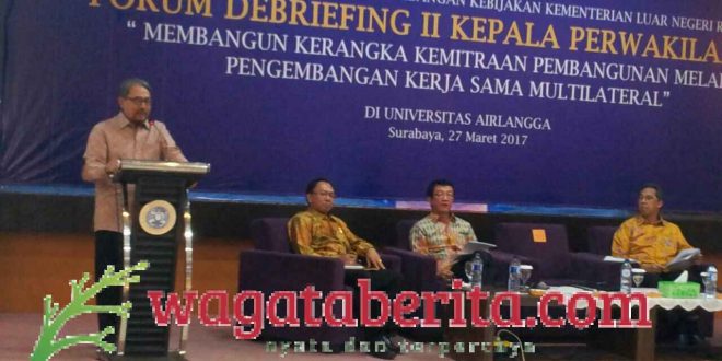 WAGATABERITA.COM – SURABAYA. Ratusan mahasiswa antusias mengikuti Debriefing II Kepala Perwakilan RI yang digelar di Kampus C Universitas Airlangga (Unair) Surabaya, Senin (27/03/2017).
