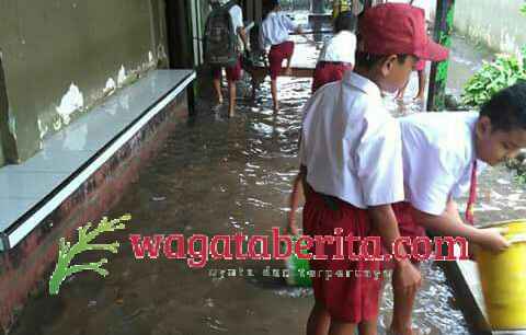Genangan air yang kerap melanda sekolah setempat, kerap menjadi sorotan para orang tua wali murid serta warga yang tinggal di sekitar daerah setempat. Pasalnya, genangan air tak hanya berada di areal halaman sekolah, namun juga masuk ke dalam ruang kelas.