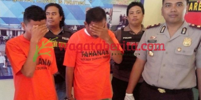 WAGATABERITA.COM – SURABAYA. Jajaran reskrim Polsek Dukuh Pakis, Surabaya berhasil meringkus dua pelaku pemerasan dan penipuan. Mereka adalah Purbowaseso (44), warga jalan Balongsari Dalam, Surabaya dan Abdillah Sudirman Wuayanto (19) warga Perum Gunungsari Indah, Surabaya. Keduanya ditangkap tak lama setelah memeras Sugianto, warga Pradah Indah, Surabaya pada Senin (10/04) lalu.