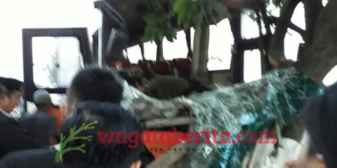 Sepeda Motor Satria FU L 5668 WY hancur. Kerugian taksir sebesar Rp.7.000.000. Sementara bus No Pol K 1407 DC kaca depan pecah, body depan rusak di perkirakan kerugian mencapai Rp15 juta. (Agus Susanto/Halu)