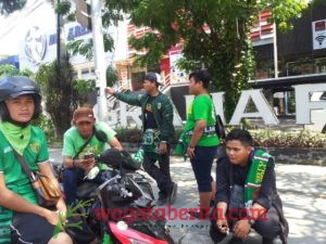 Puluhan polisi serta satu unit mobil pemukul mundur massa sejak pagi hari sudah terlihat di halaman Gedung Graha Pena Jl A. Yani Surabaya. Tak itu, anjing pelacakpun, ikut dibawa untuk mengantisipasi massa bonek atau arek – arek Suroboyo itu.