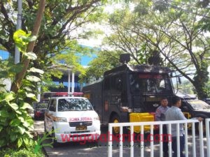 WAGATABERITA.COM – SURABAYA. Gedung Graha Pena yang merupakan Kantor Jawa Pos mendadak dipenuhi polisi Senin (22/05/2017).
