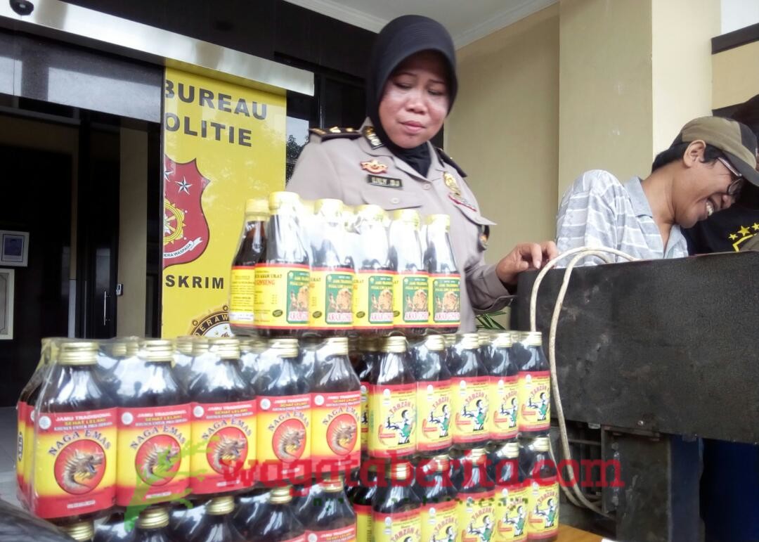 Sebab petugas yang datang menggeledah kediaman yang juga tempat usaha pembuatan jamu tersebut. Setelah memintai keterangan polisi membawa beberapa alat dan bahan produksi jamu cair sebagai barang bukti.