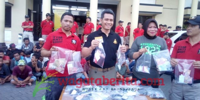 WAGATABERITA.COM – SURABAYA. Tim anti bandit Polrestabes Surabaya menggrebek perjudian beromzet jutaan rupiah, Rabu (02/08/2017). Empat puluh orang diamankan dari tempat kejadian perkara di Jalan Karang Asem, Ploso, Tambaksari Surabaya.
