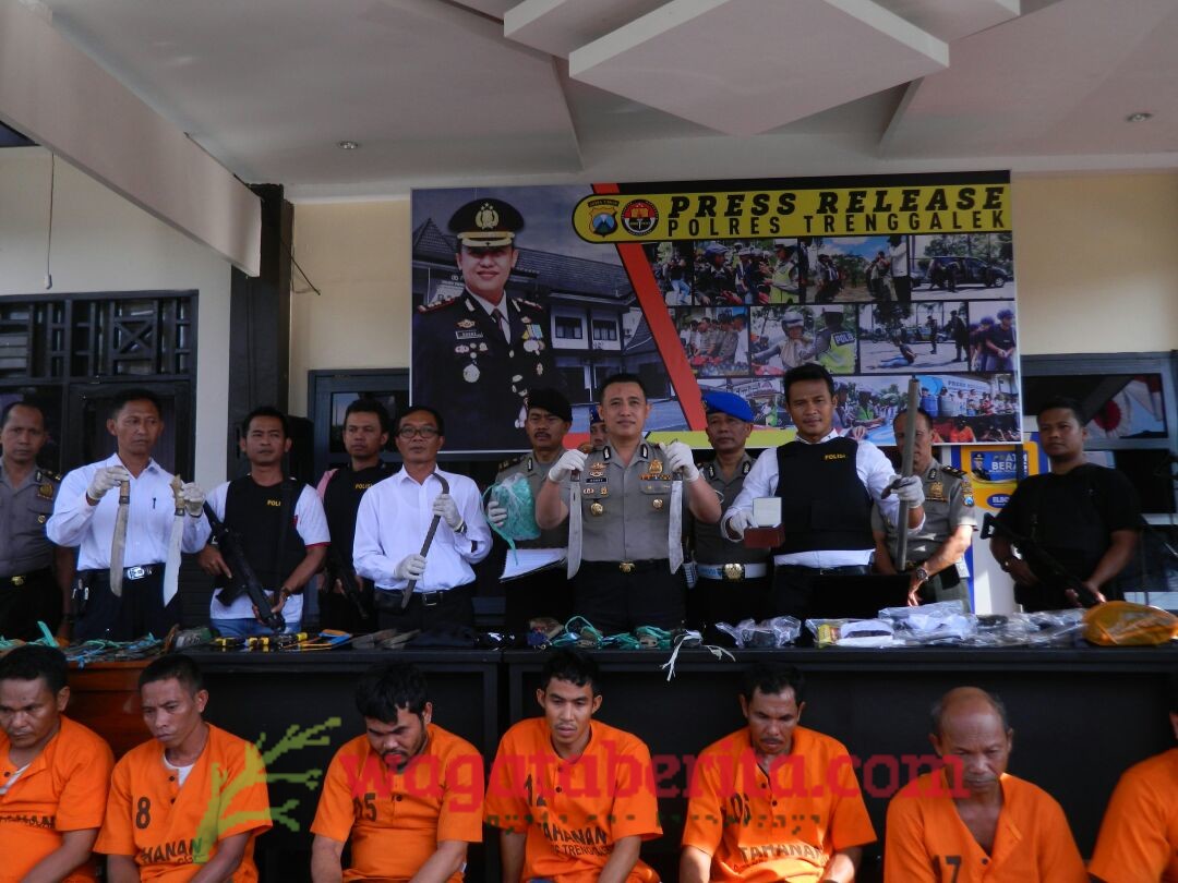 WAGATABERITA.COM -TRENGGALEK. Kasus perampokan yang menyasar 2 rumah milik pengusaha di Trenggalek berhasil diungkap. Perampokan tersebut terjadi pada Kamis (04/08) sekira pukul 00 : 30 WIB lalu. Berdasarkan laporan korban yakni Jimmy, pelaku yang berjumlah 6 orang ini masuk kedalam rumahnya melalui pintu belakang rumah dan menyekap seluruh penghuni rumah.