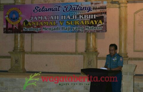 WAGATABERITA.COM – SURABAYA. Asisten Operasi Komandan Pangkalan Utama TNI AL (Asops Danlantamal) V Kolonel Laut (P) Aris Harijadi mewakili Komandan Lantamal V Laksamana Pertama TNI Edi Sucipto menyambut kedatangan 34 jamaah haji KBIH Lantamal V, di Gedung Serba Guna Mako Lantamal V, Selasa (19/09/2017).